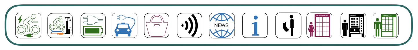 Wer schonmal mit dem eBike unterwegs war und ohne Akkuleistung treten musste, wäre froh gewesen ein Örtchen mit Ladestation in der Nähe zu haben. Auch eine Reparaturhilfe können wir optional integrieren.